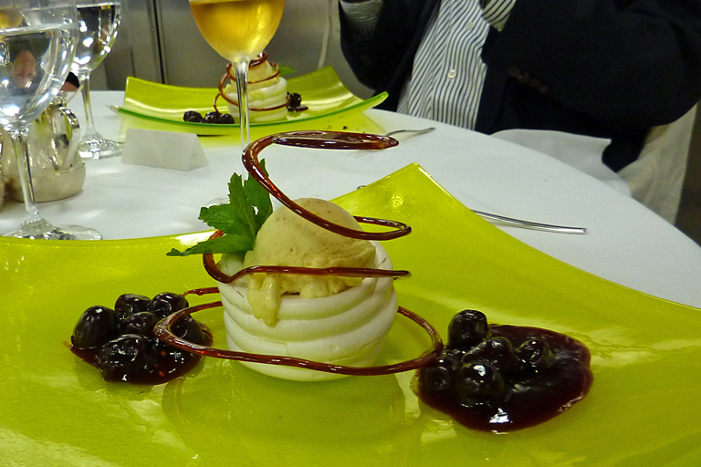 | I was invited one night to a special dinner for six at a table in the galley. The food was superb and it was fascinating to watch the galley operation in full swing. |